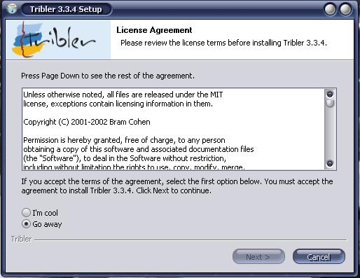occorre accettare la licenza invece della classica scelta: "I accept"